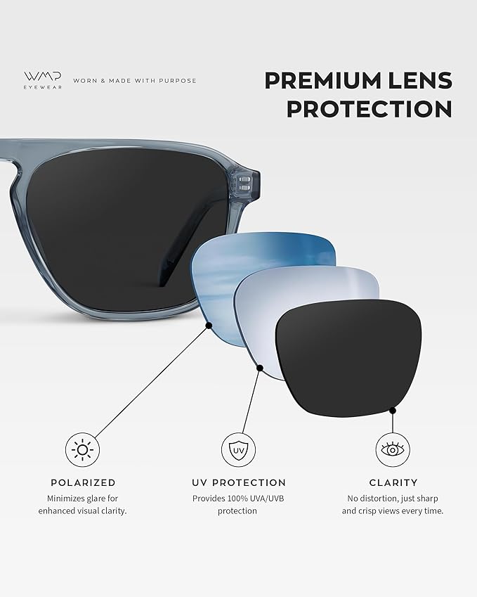 Featuring polarized lenses that reduce glare and reflections, delivering sharp, clear vision—ideal for driving, relaxing by the water, or enjoying bright sunny days.